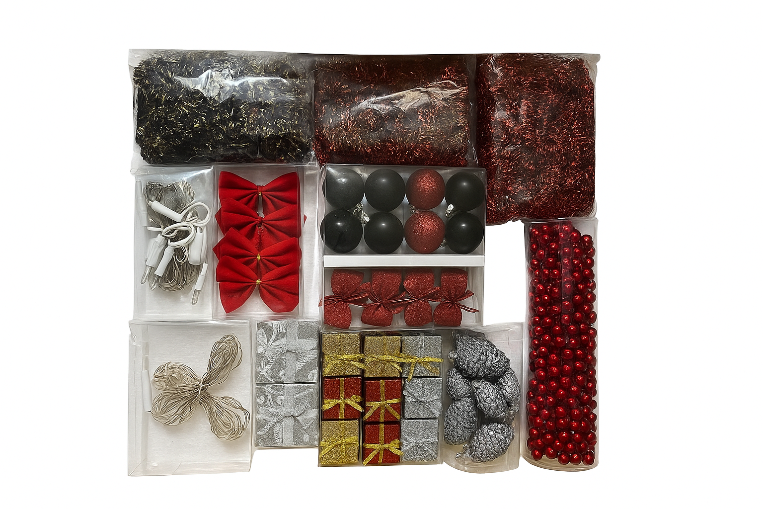 Combina a la perfección con luces, esferas, cintas, moños y adornos temáticos.