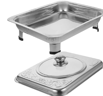 La bandeja de acero inoxidable POT-WYD035 cuenta con una tapa ajustada que mantiene la frescura y evita derrames, ideal para uso en cocina profesional o doméstica. Su diseño cuadrado de 34x34x6.5 cm ofrece un amplio espacio para preparar, servir o almacenar distintos tipos de comidas.