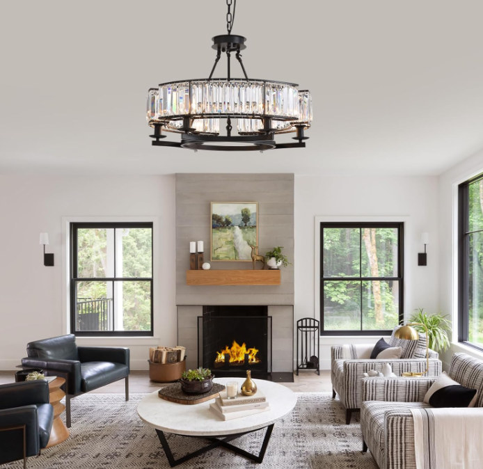 Ilumina y decora con personalidad tu hogar con este candelabro de cristal negro de estilo granja industrial.