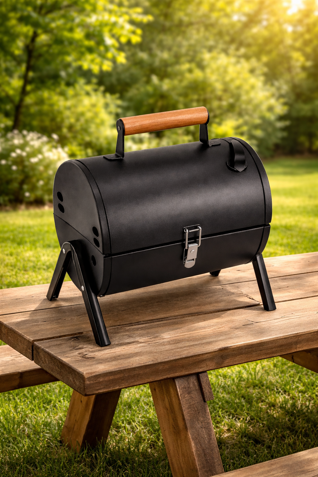 Disfruta el auténtico sabor del asado donde quieras con esta churrasquera de metal a carbón portátil, perfecta para paseos, camping y reuniones al aire libre 🤍