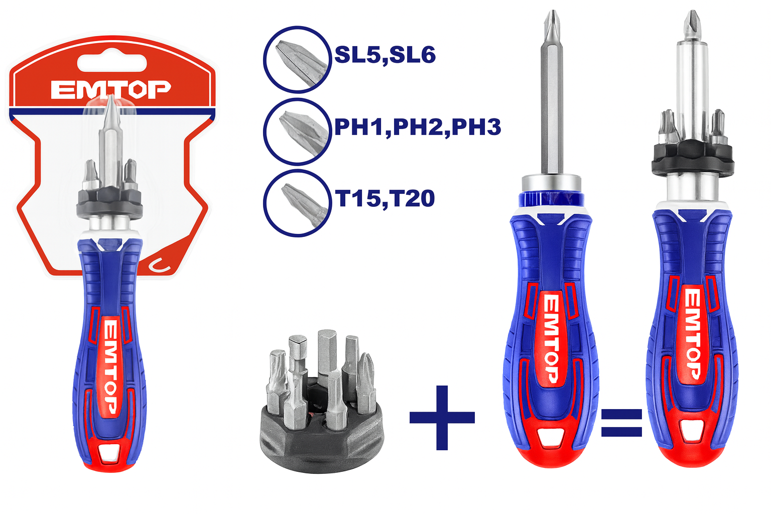 Destornillador Multipuntas con Trinquete de 8 Piezas