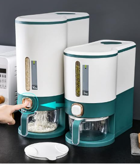 Mantén tu arroz fresco, seco y siempre a la mano con el dispensador de plástico PD-SN080. Su diseño moderno y funcional permite almacenar y dosificar fácilmente grandes cantidades de arroz, ideal para hogares o negocios.
