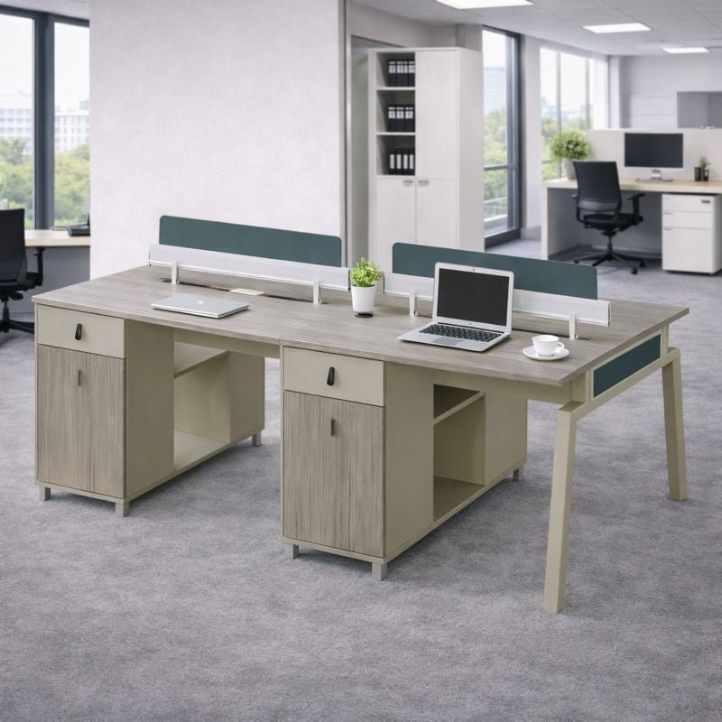El escritorio para 4 personas código JJ-XX41114004-41 / XZHX032403-004 es ideal para oficinas colaborativas y áreas de trabajo compartidas 💼🏢. Su diseño amplio y funcional permite que varios usuarios trabajen de manera cómoda y organizada, fomentando el trabajo en equipo y manteniendo una imagen moderna y profesional en el espacio.