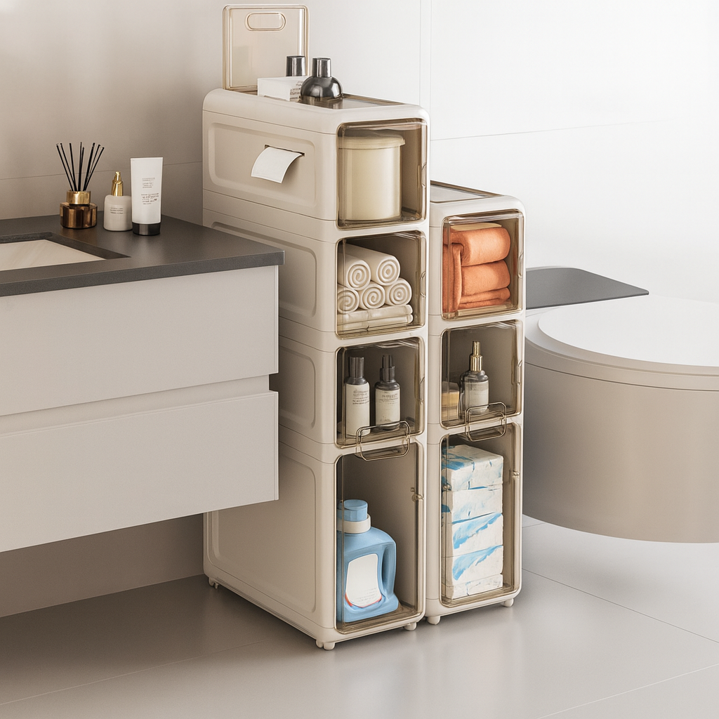 Ahorra espacio y organiza tus artículos con este gabinete compacto de plástico. Ideal para baños, cocinas, oficinas o lavanderías, su diseño práctico y resistente te ayudará a mantener todo en orden sin ocupar mucho espacio.