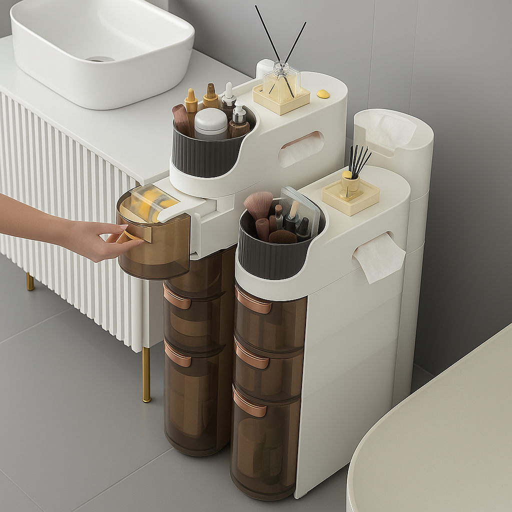 Aprovecha cada rincón con este práctico gabinete plástico de diseño compacto. Ideal para baño, cocina, oficina o lavandería, te ayuda a mantener el orden sin ocupar mucho espacio.