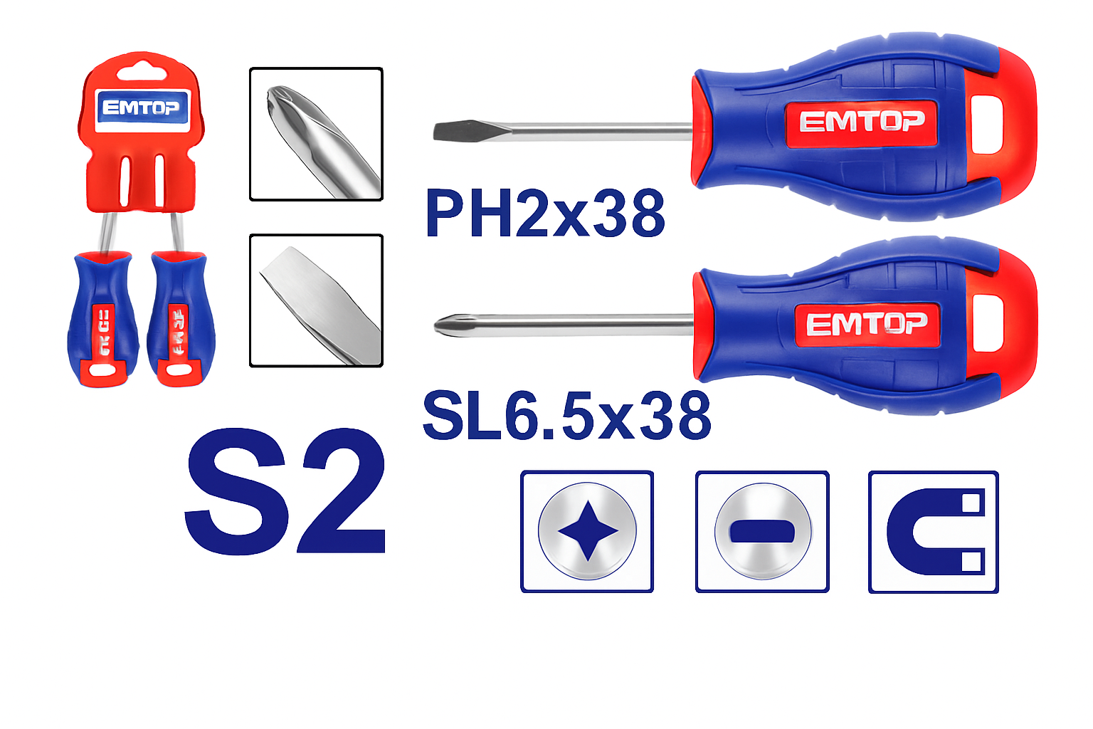 Juego de Destornilladores de 2 Piezas Plano y de Cruz