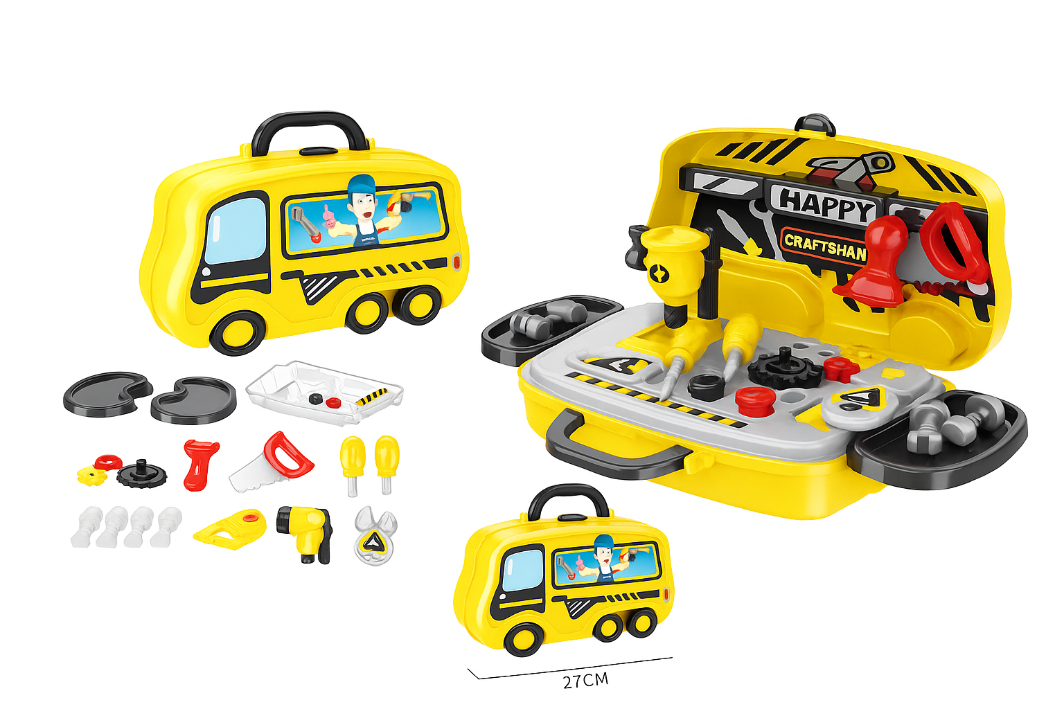 El juguete de herramientas modelo 678-104A es un set interactivo ideal para que los niños aprendan jugando y desarrollen su coordinación y creatividad. Fabricado en plástico resistente y seguro, incluye herramientas de juguete con diseño realista, lo que permite a los pequeños simular trabajos de reparación y construcción de forma segura. Perfecto para el hogar, guarderías o como regalo educativo.