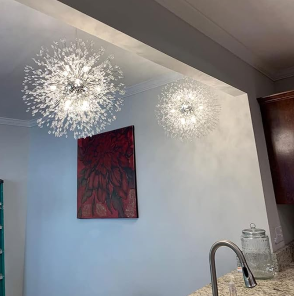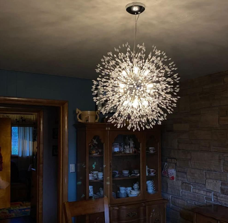 Equipada con 9 luces G9 , ofrece una iluminación cálida, equilibrada y decorativa, ideal para comedores, salas, hoteles o residencias de alto nivel con una estética contemporánea y elegante.