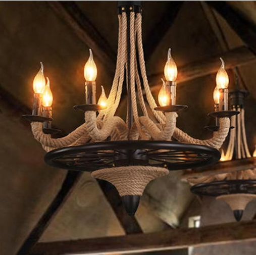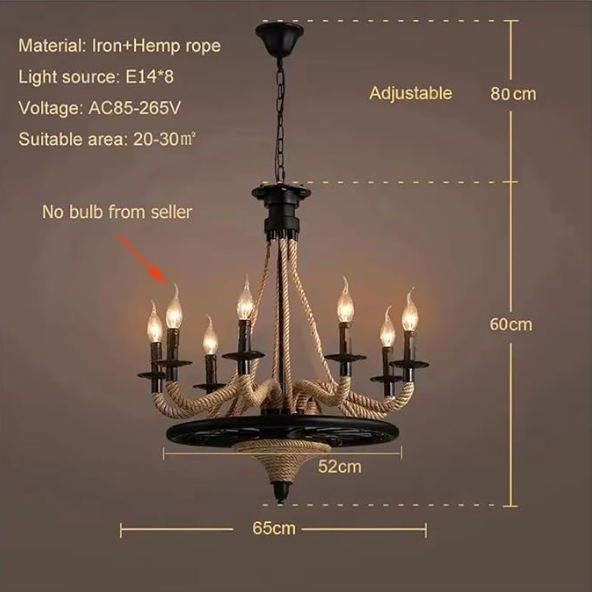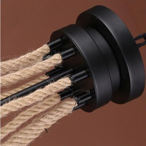 Ideal para restaurantes, comedores, bares, hoteles o salas amplias con decoración rústica, natural o industrial vintage. Su combinación de hierro y yute crea una iluminación acogedora y una estética artesanal que resalta la calidez del ambiente.