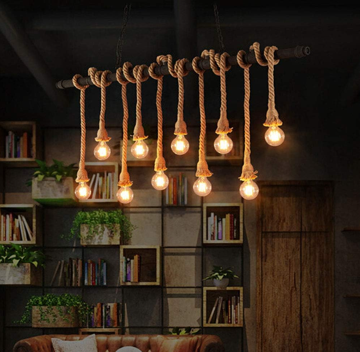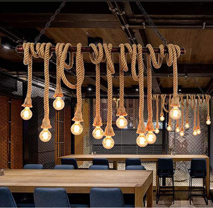 Ideal para restaurantes, bares, comedores, hoteles o salas amplias con decoración rústica, vintage o industrial. Su diseño en cuerda de cáñamo natural brinda una iluminación cálida y acogedora, perfecta para crear ambientes con personalidad y estilo artesanal.