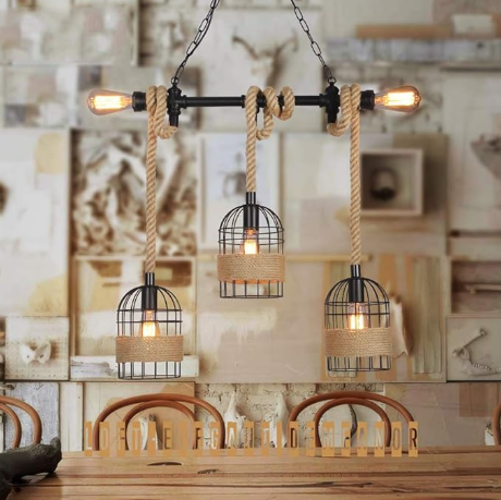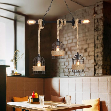 Perfecta para comedores, bares, restaurantes, salas, hoteles o espacios con decoración rústica, natural o vintage-industrial. Su textura en soga natural y estructura metálica brindan una iluminación cálida y estética que se convierte en el punto focal del ambiente.