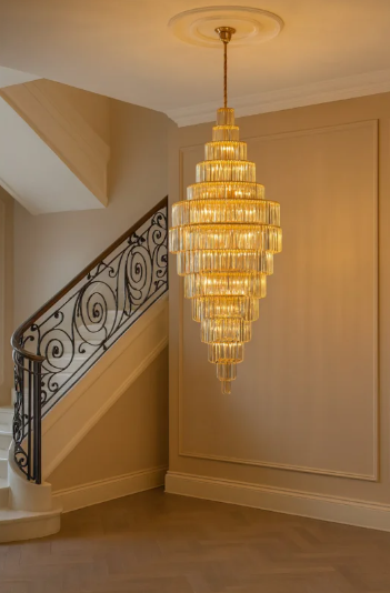 Iluminación cálida y brillante ideal para espacios amplios y lujosos.
