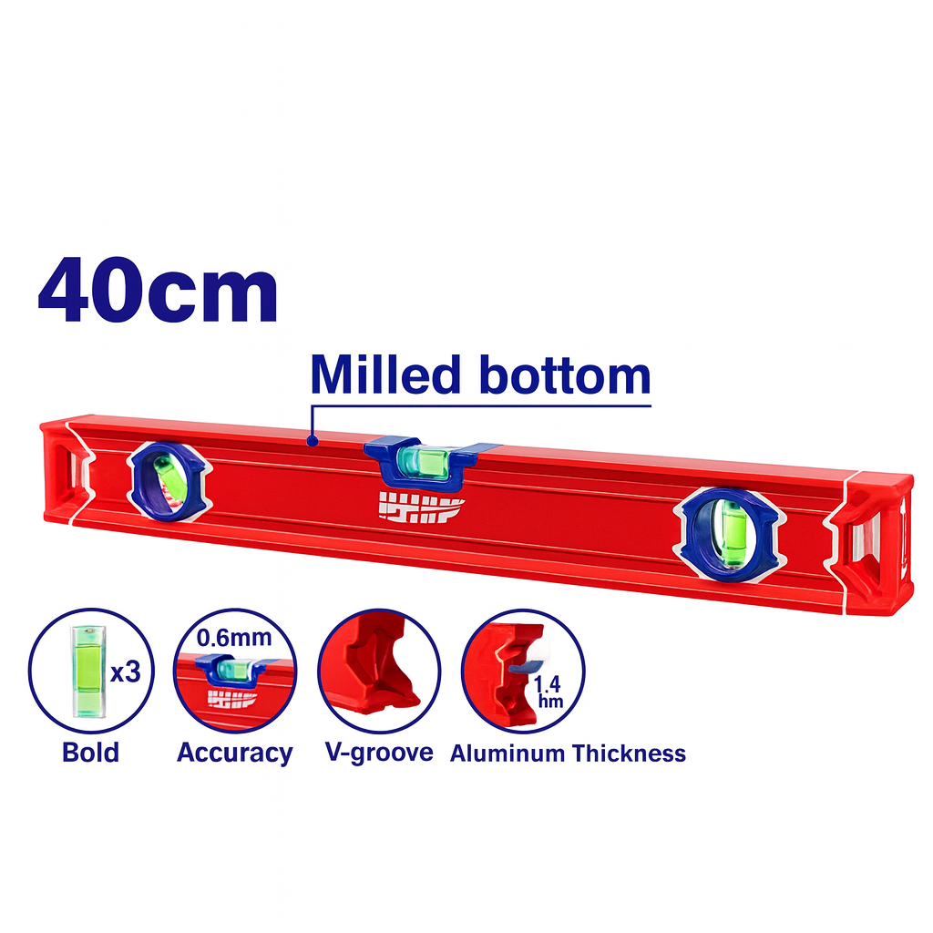 Nivel de Burbuja de 40 cm con Ranura en V para Superficies Redondeadas