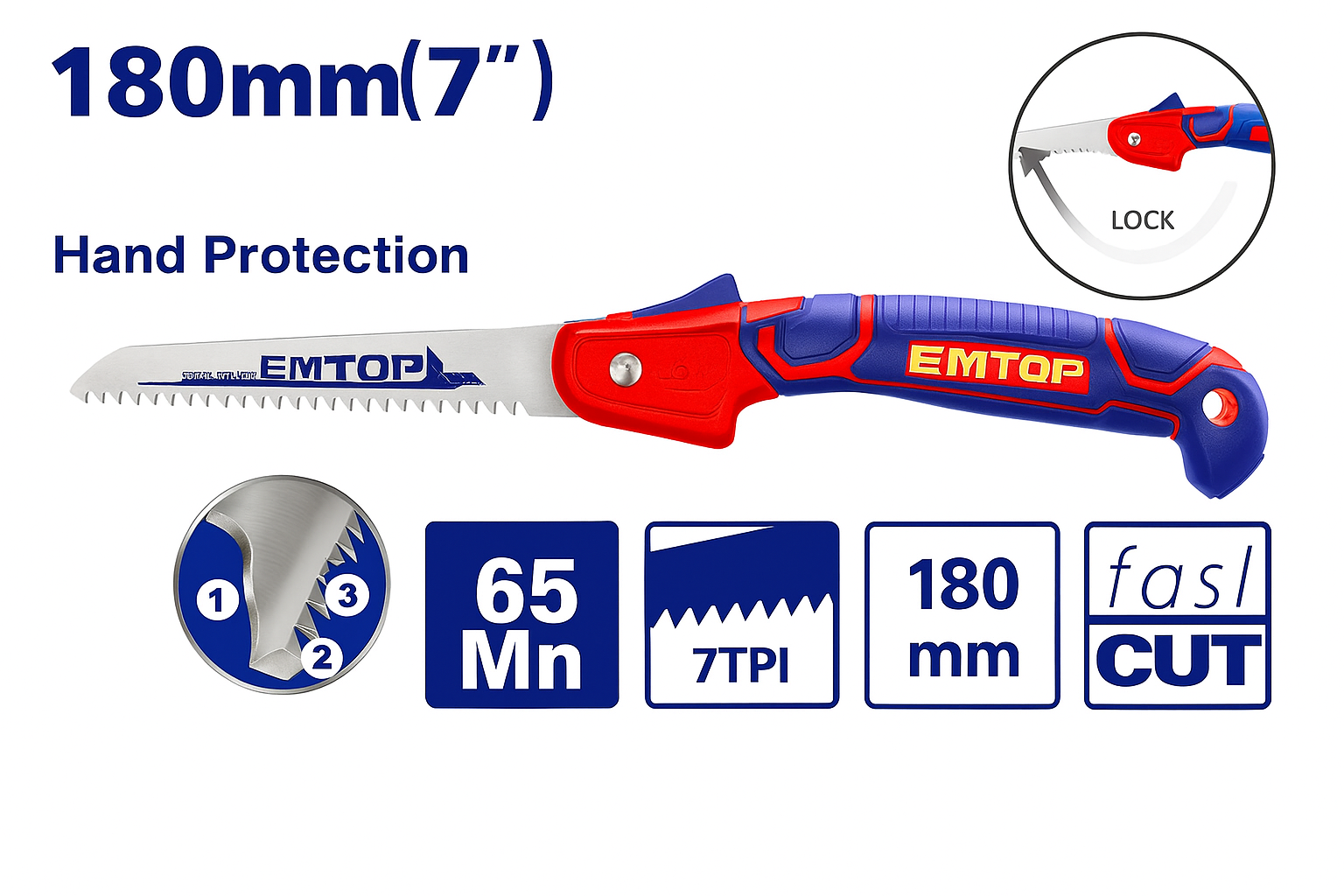 Sierra de Mano para Madera 7" – (65Mn, 7TPI, Corte Rápido)