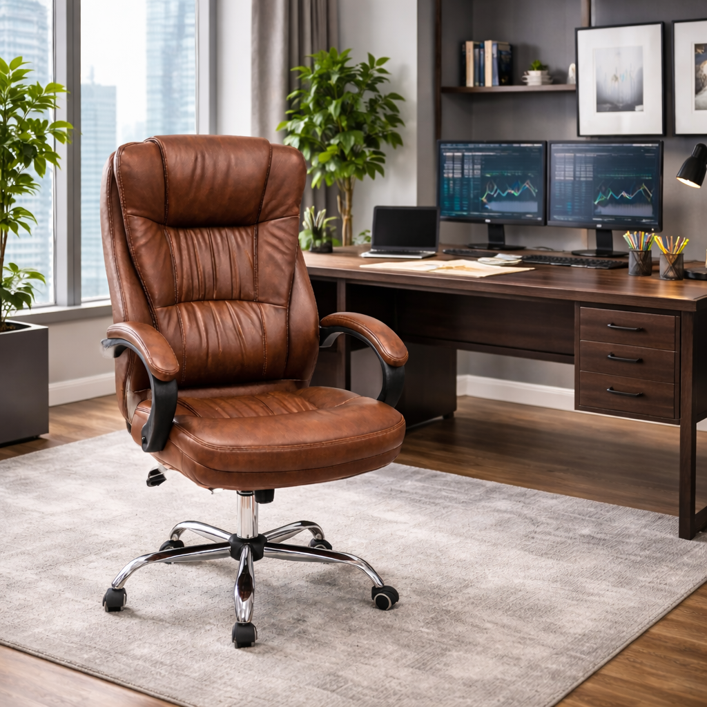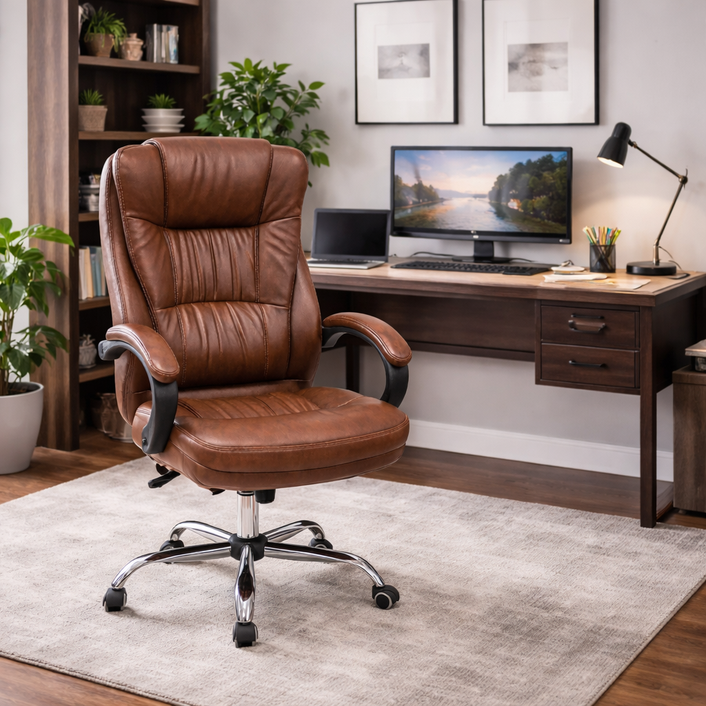 La silla de oficina código FNT-BS009 combina cuero sintético y estructura de metal, ofreciendo un diseño elegante y resistente 💼🖥️. Cuenta con ruedas que facilitan el desplazamiento, ideal para oficinas y home office que buscan comodidad, durabilidad y una imagen profesional con un toque moderno.