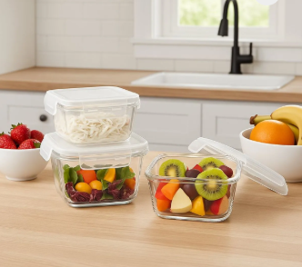🥗✨ Conservá tus alimentos frescos y bien organizados con el táper de vidrio cuadrado PD-YDL019. Ideal para porciones de comida, ensaladas, frutas o snacks.
