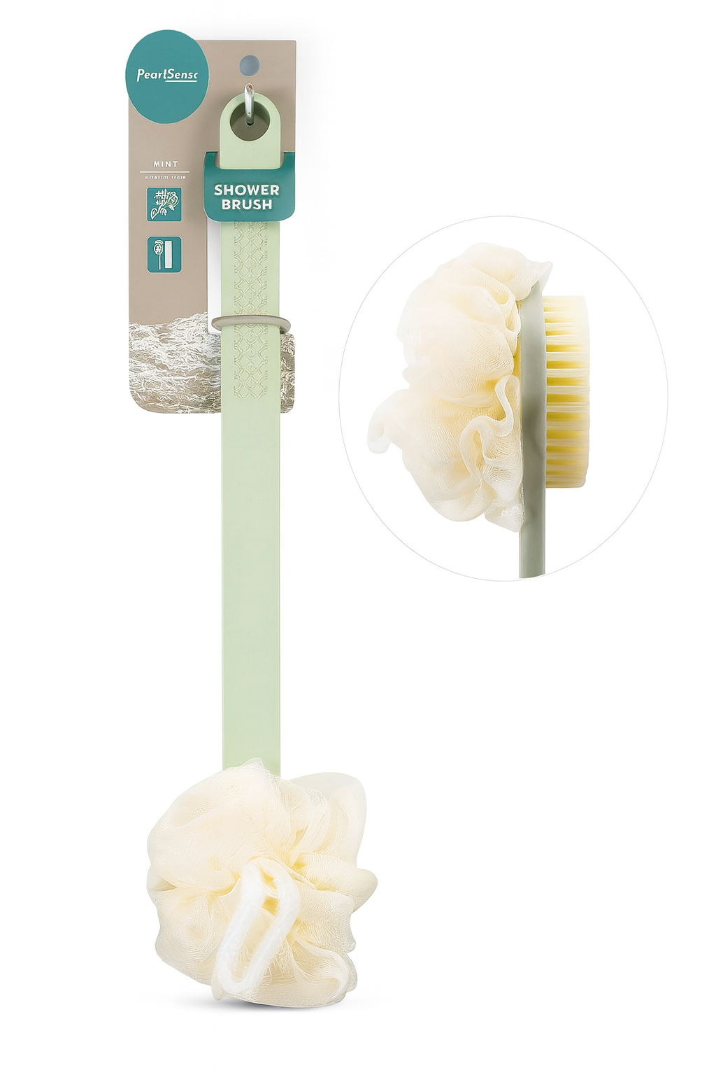 • Cepillo de ducha para espalda con mango
