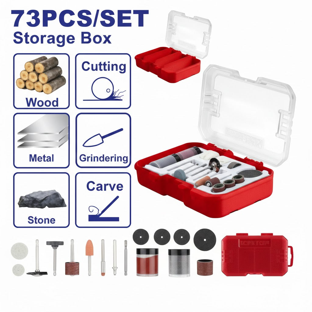 Lleva tus habilidades de detalle al siguiente nivel con el Set de Accesorios para Minitaladro de 73 Piezas (General Use Mini Drill Set) . Este kit integral es el compañero definitivo para propietarios de mototool, diseñado para cubrir todas las etapas de un proyecto: desde el corte inicial y el desbaste hasta el grabado fino y el pulido brillante. 🚀💎