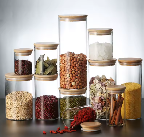 Fabricado con vidrio grueso de alta calidad, resistente y duradero, y una tapa hermética de bambú ecológico que ayuda a mantener la frescura de los productos almacenados.