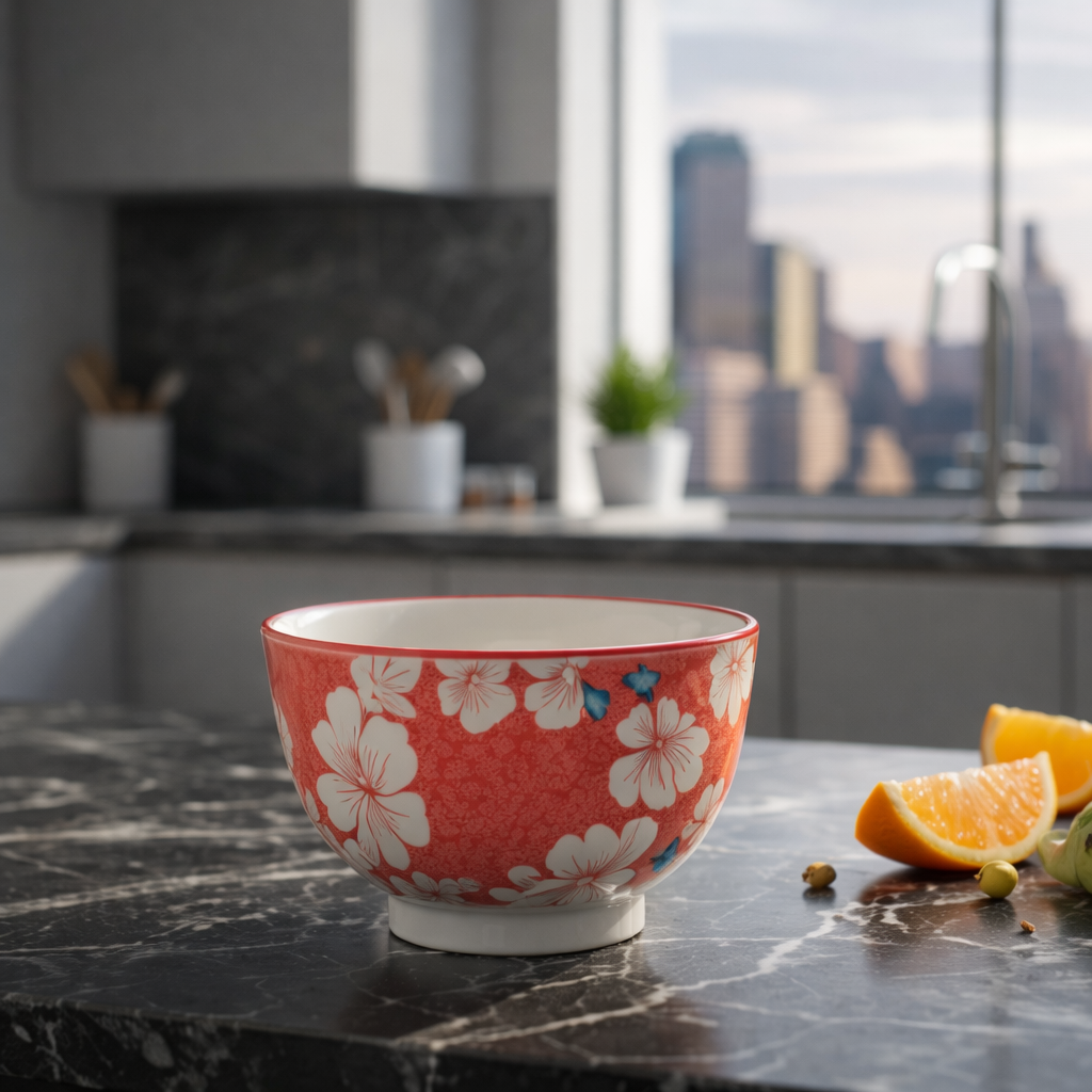 Es un tazón de cerámica con estampado encantador y moderno, ideal para quienes buscan una vajilla con estilo, color y personalidad. Su diseño decorativo y acabado brillante aportan un toque alegre y elegante a la mesa, perfecto para el uso diario o para presentaciones especiales. ✨