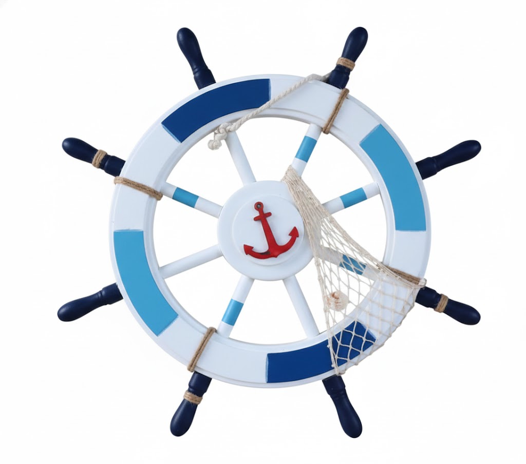 El OM-XQH006 es un adorno colgante en forma de timón de barco, ideal para darle un toque marino, fresco y decorativo a tus espacios. Su diseño náutico convierte cualquier pared en un punto focal lleno de personalidad.