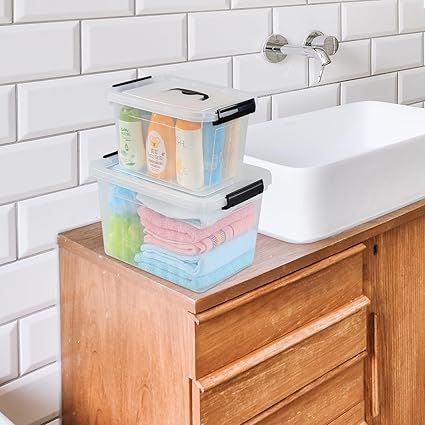 Su diseño transparente te permite ver el contenido de inmediato 👀 y la tapa con cierre seguro protege tus cosas del polvo y la humedad.