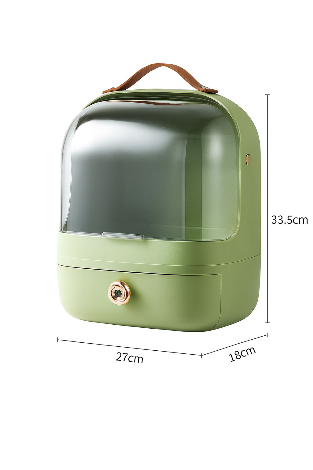 Caja organizadora compacta para maquillaje, ideal para mantener tus cosméticos en orden y siempre a la vista. Perfecta para tocador, baño o escritorio, ayudando a aprovechar mejor el espacio.