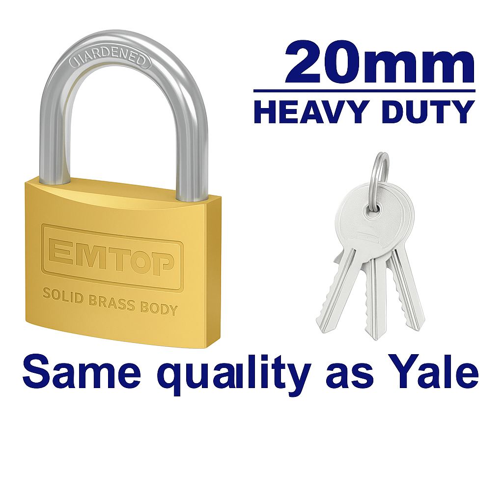 • Candado de latón 20 mm de alta seguridad con cilindro y llaves de latón (3 piezas)