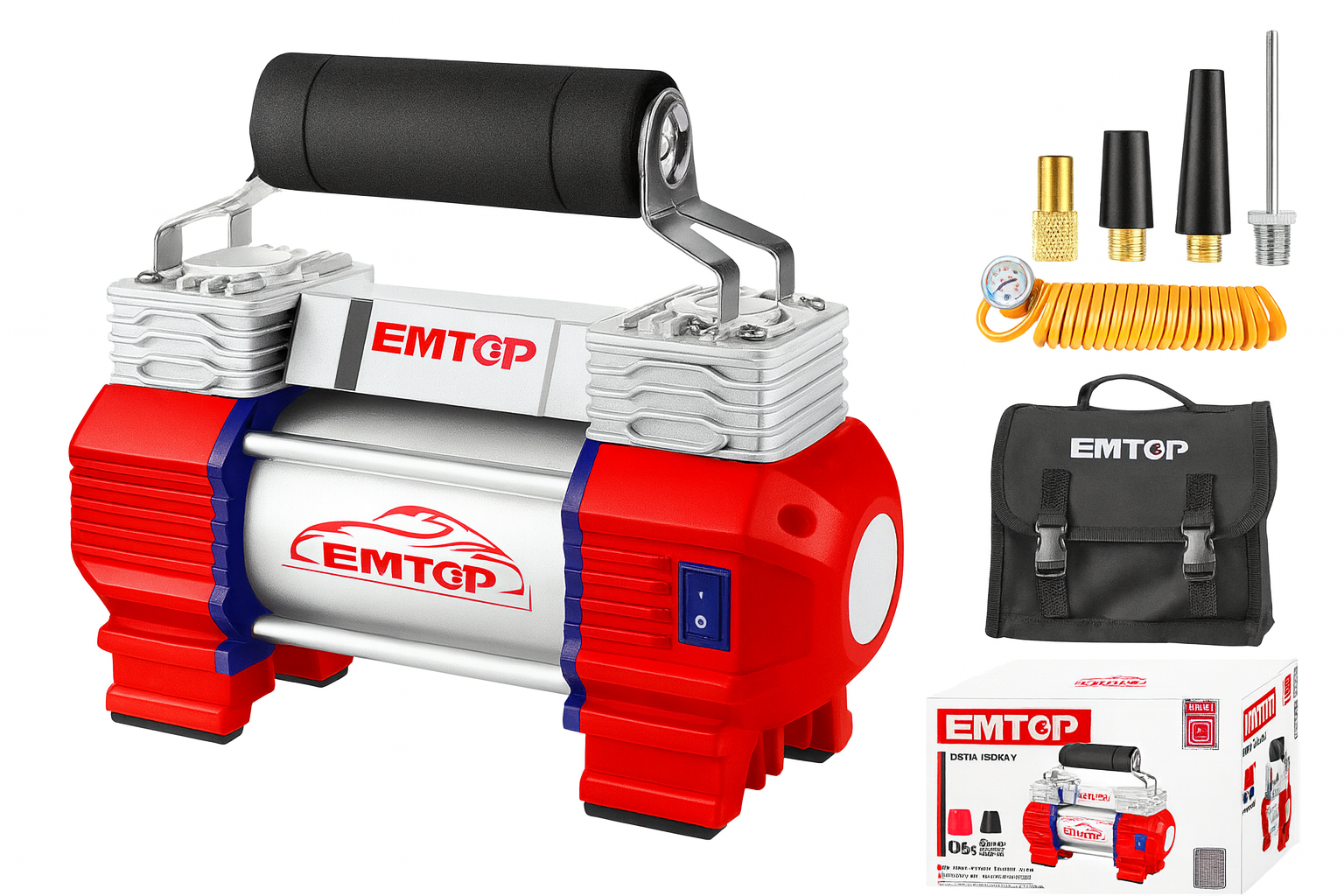 Compresor de Aire para Auto de Alta Potencia 12V – Doble Cilindro con Luz LED y Maletín