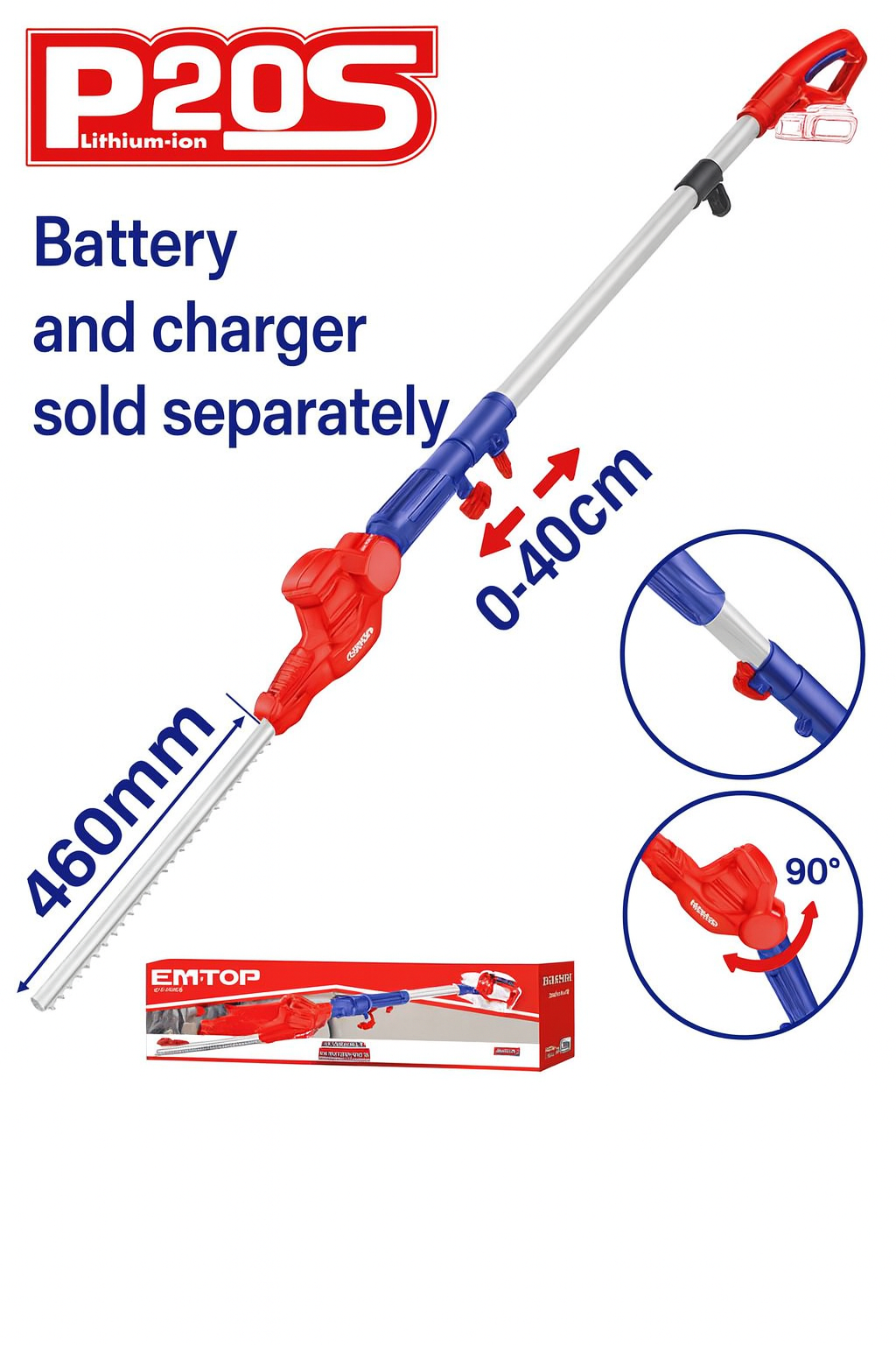 Cortasetos Telescópico Inalámbrico 20V – (2.4 m, 460 mm, 2800 spm, Cuchilla Láser)