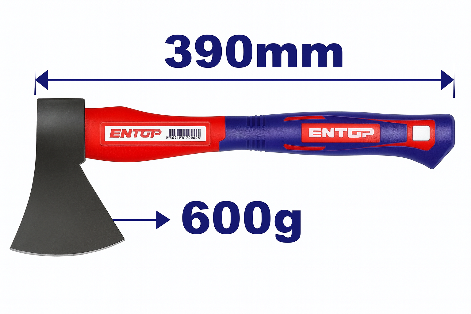 • Hacha de 600 g con mango de fibra de vidrio y cabeza forjada en acero al carbono 45#