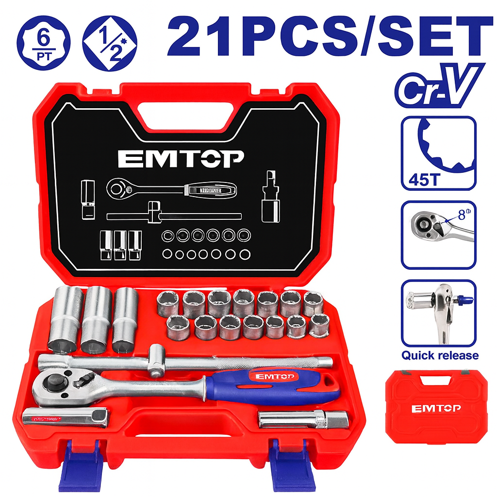 Juego de llaves de vaso EMTOP – 21 piezas (1/2")