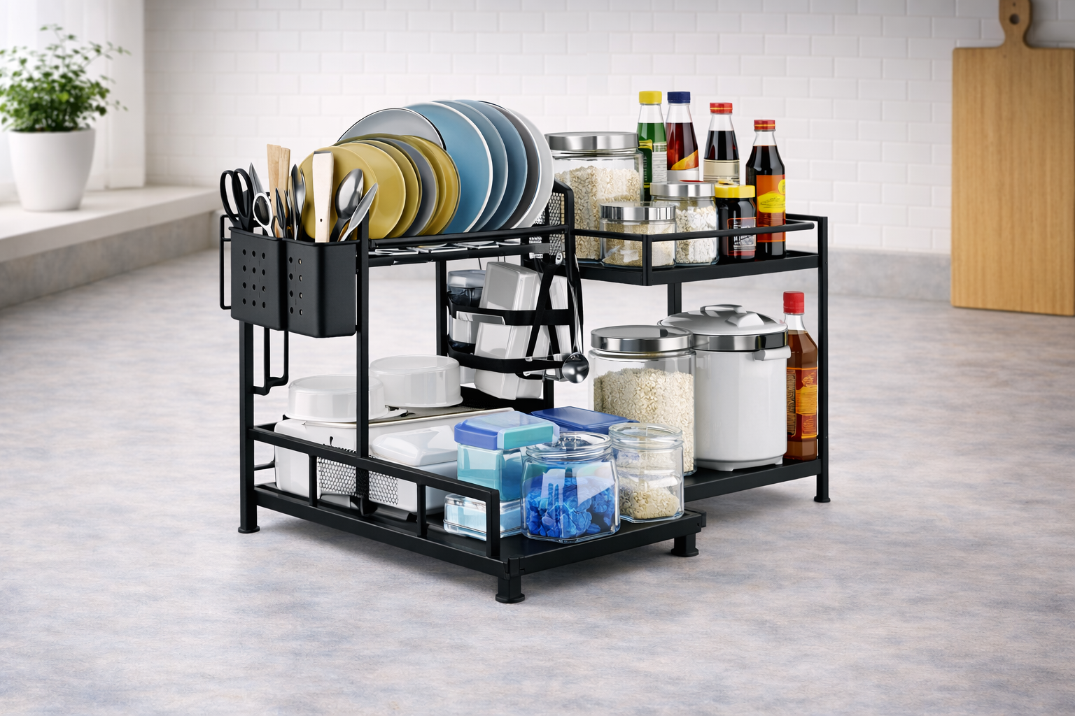 Organiza tu cocina de forma práctica con este estante de platos de dos niveles, ideal para acomodar platos, vasos y utensilios, aprovechando mejor el espacio 🤍