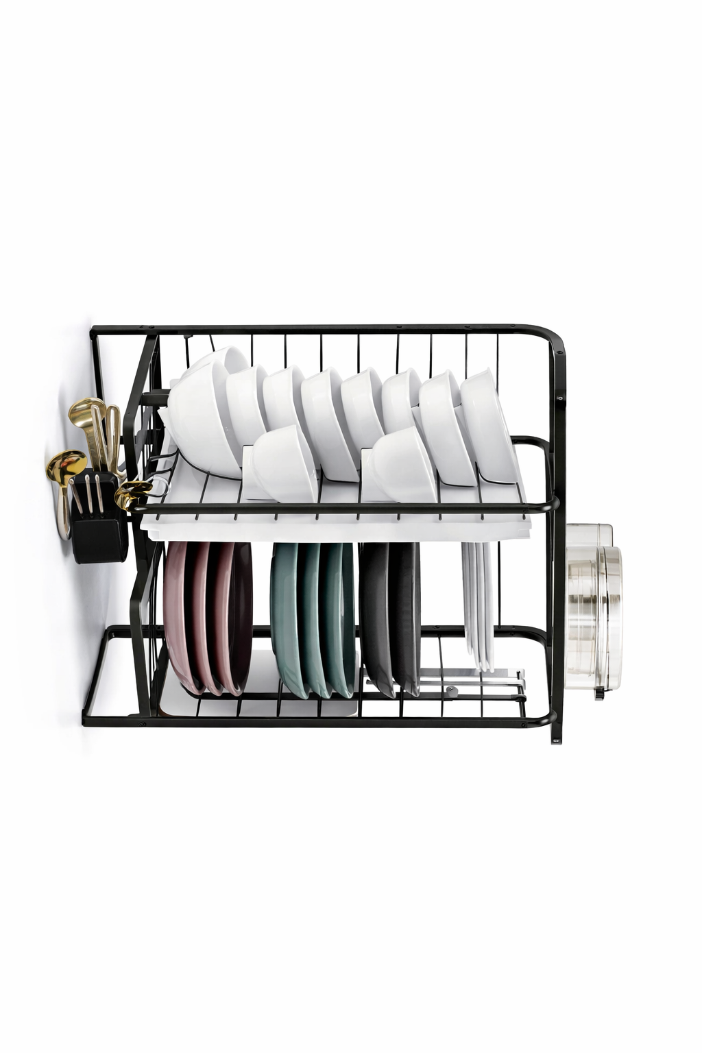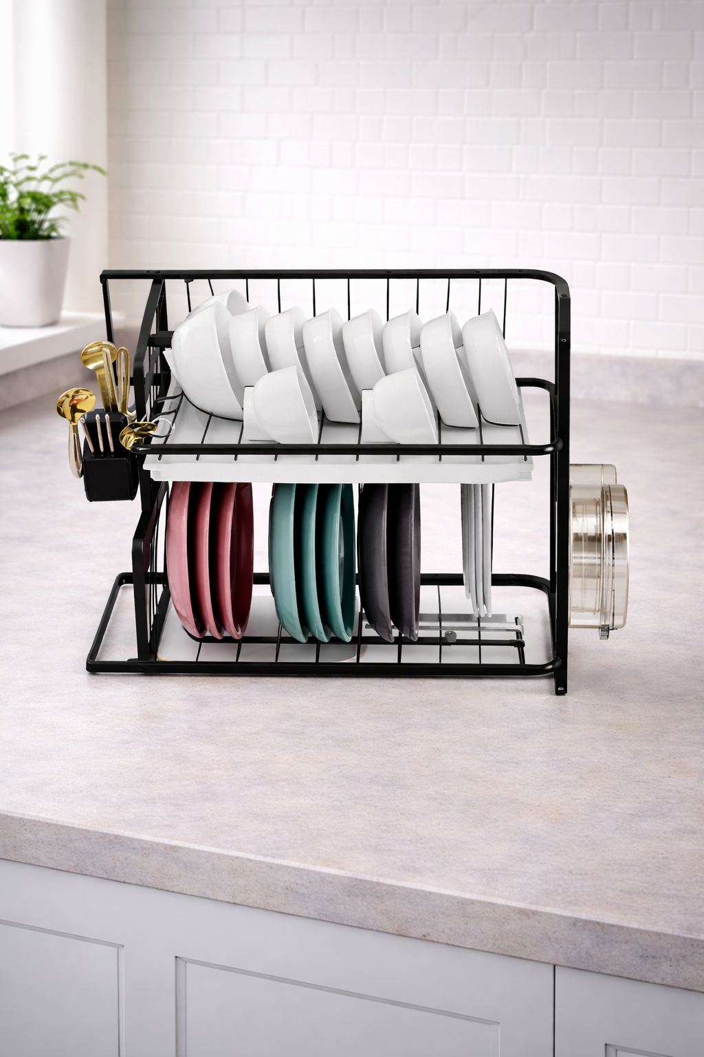 Organiza tu cocina con estilo con este estante de platos de dos niveles en color negro, ideal para acomodar platos, vasos y utensilios mientras ahorras espacio 🤍