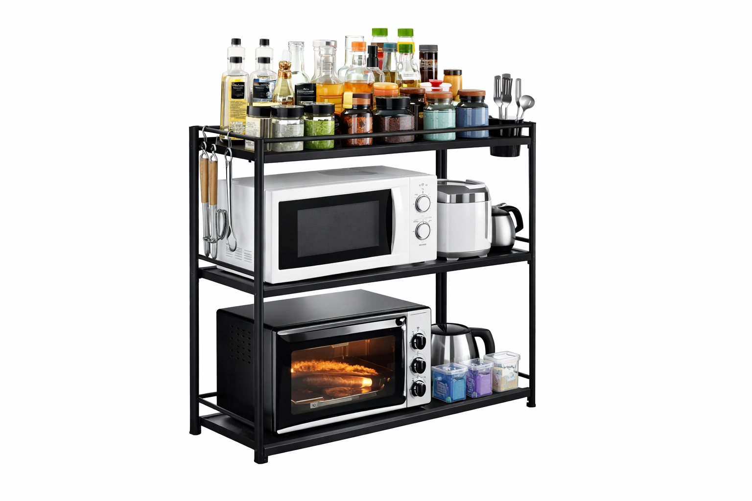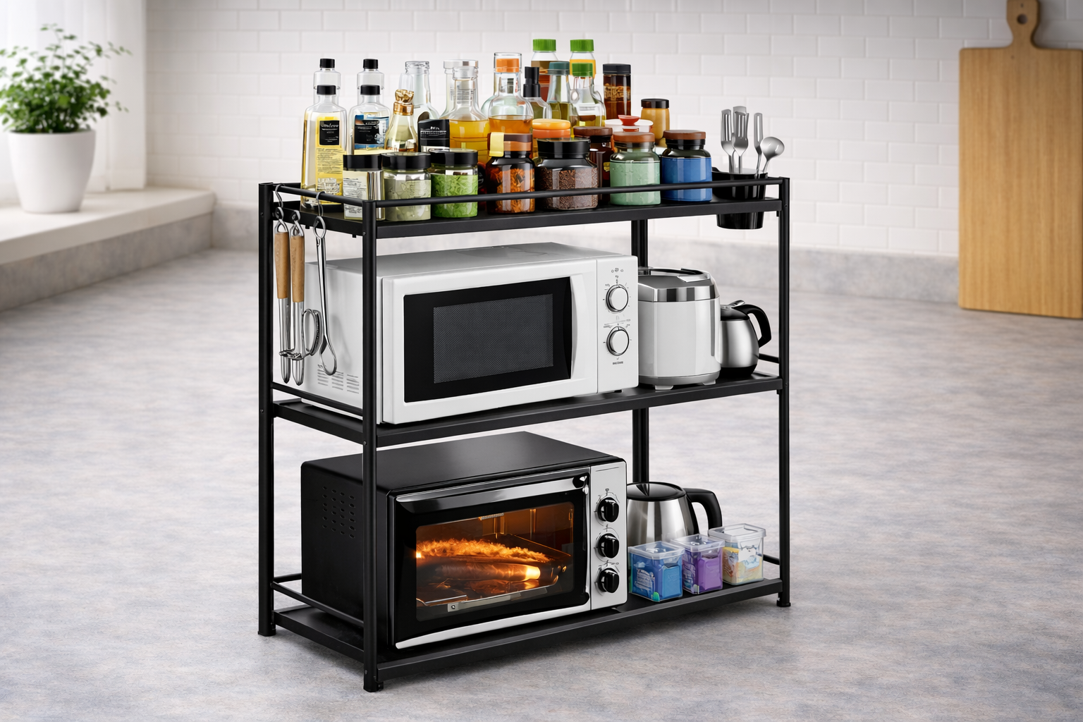 Aprovecha mejor tu espacio con este estante para microondas, ideal para organizar tu cocina y mantener utensilios, especias o electrodomésticos siempre en orden 🤍