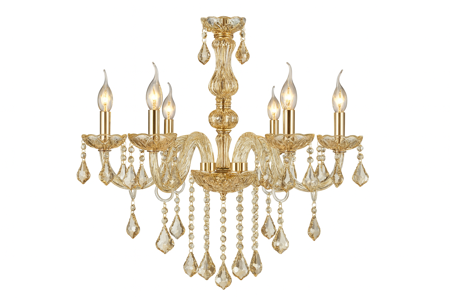 Lámpara colgante de cristal | E12 – Cromo electrochapado y color coñac