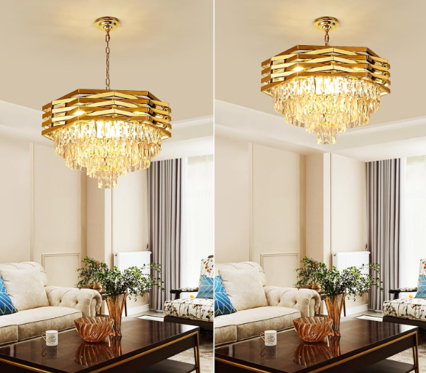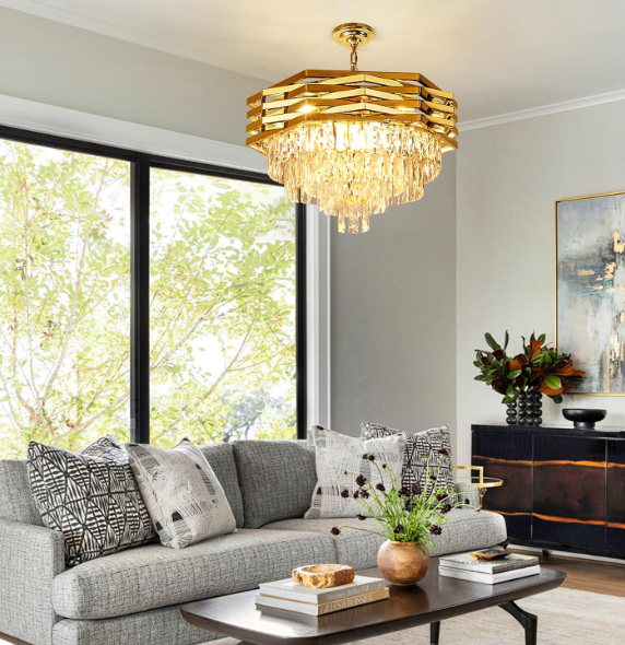 la lámpara colgante decorativa LG-MY50214110 es una pieza de lujo diseñada para destacar en cualquier ambiente. Su estructura circular de gran tamaño, elaborada en acero inoxidable, cristal y hierro, combina resistencia y elegancia con un espectacular acabado dorado electrolítico que aporta un brillo cómodo y atemporal.