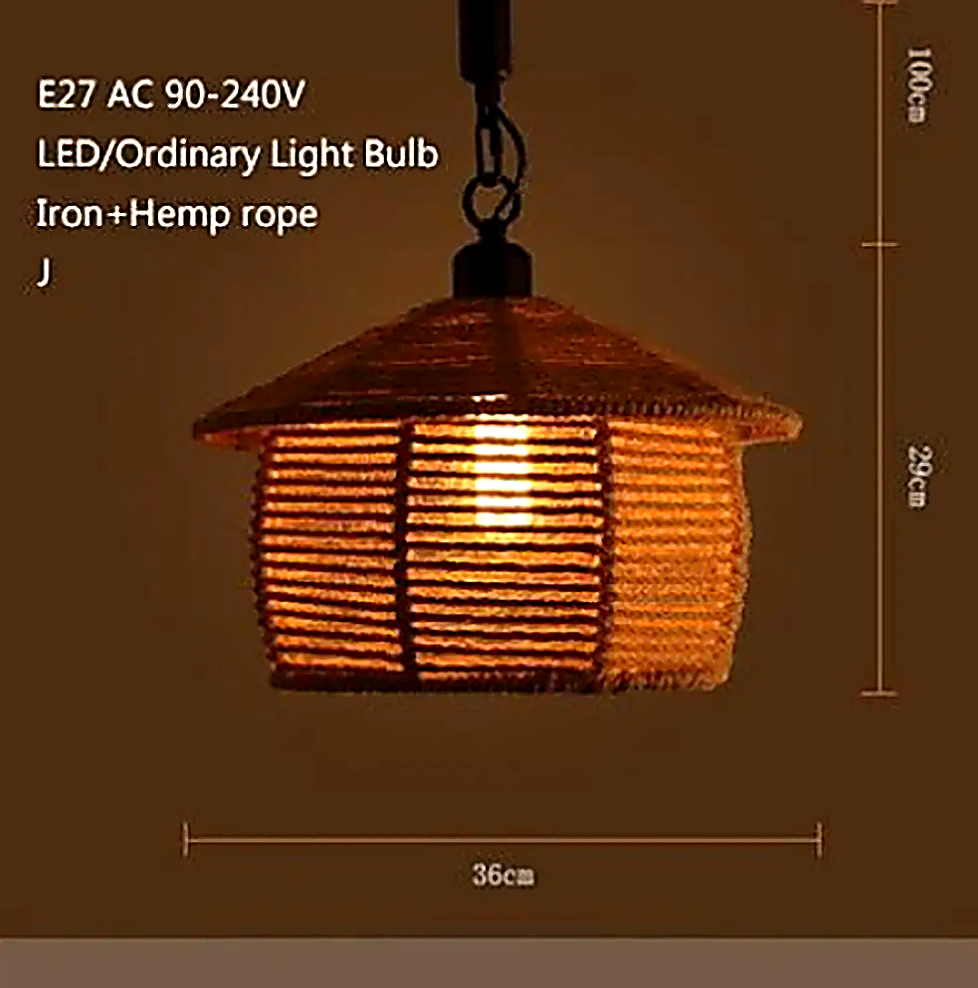 Lampara colgante LG-YC40701115 combina materiales naturales y diseño artesanal para crear una iluminación cálida y acogedora. Su estructura de hierro recubierta con cuerda de yute natural ofrece un estilo rustico y decorativo, ideal para espacios que buscan una estética natural e industrial.
