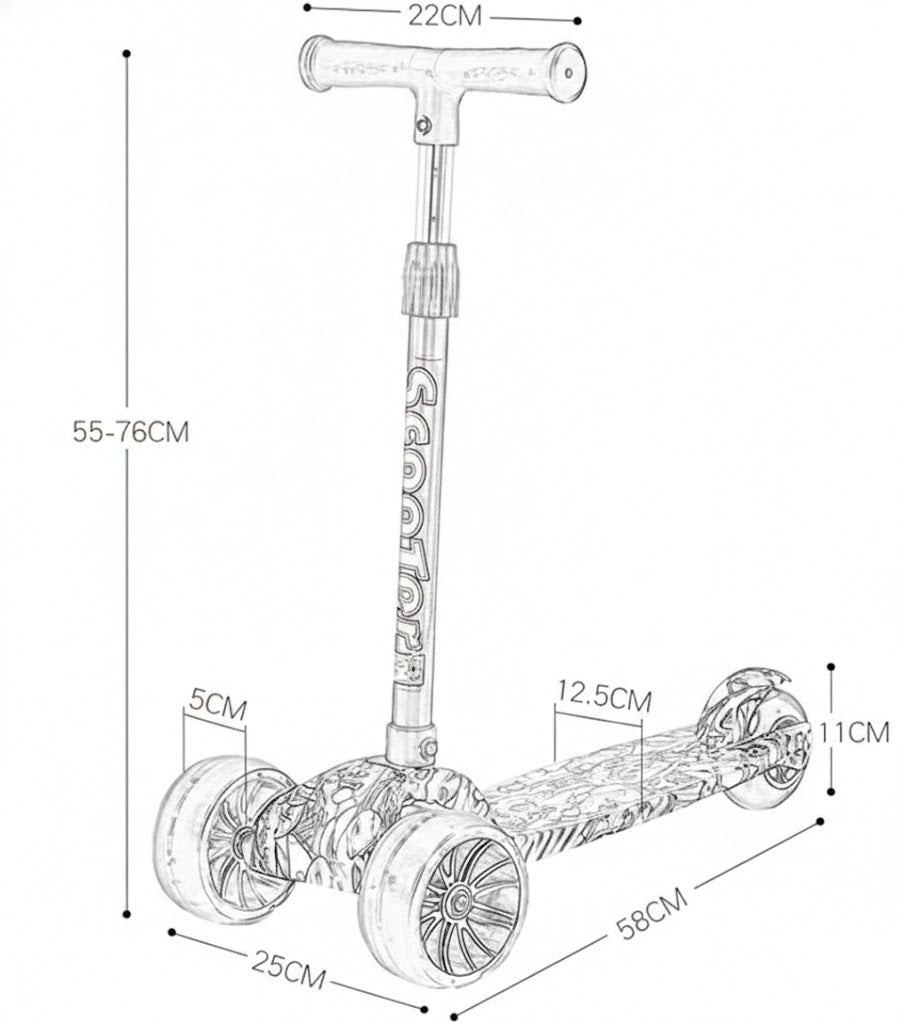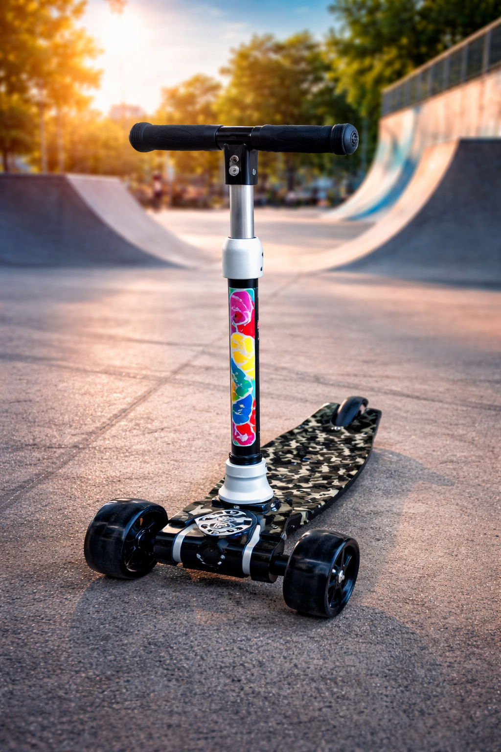 Divertido monopatín para niños, diseñado para ofrecer entretenimiento seguro y activo. Su diseño ligero y resistente permite un manejo sencillo, ideal para que los pequeños disfruten del juego al aire libre mientras desarrollan equilibrio y coordinación.