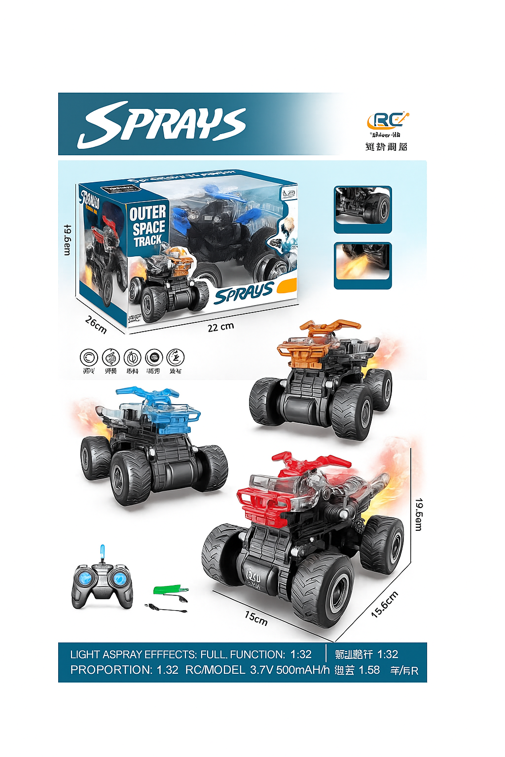 Moto a control remoto con efecto de spray resistente, divertida y segura para niños