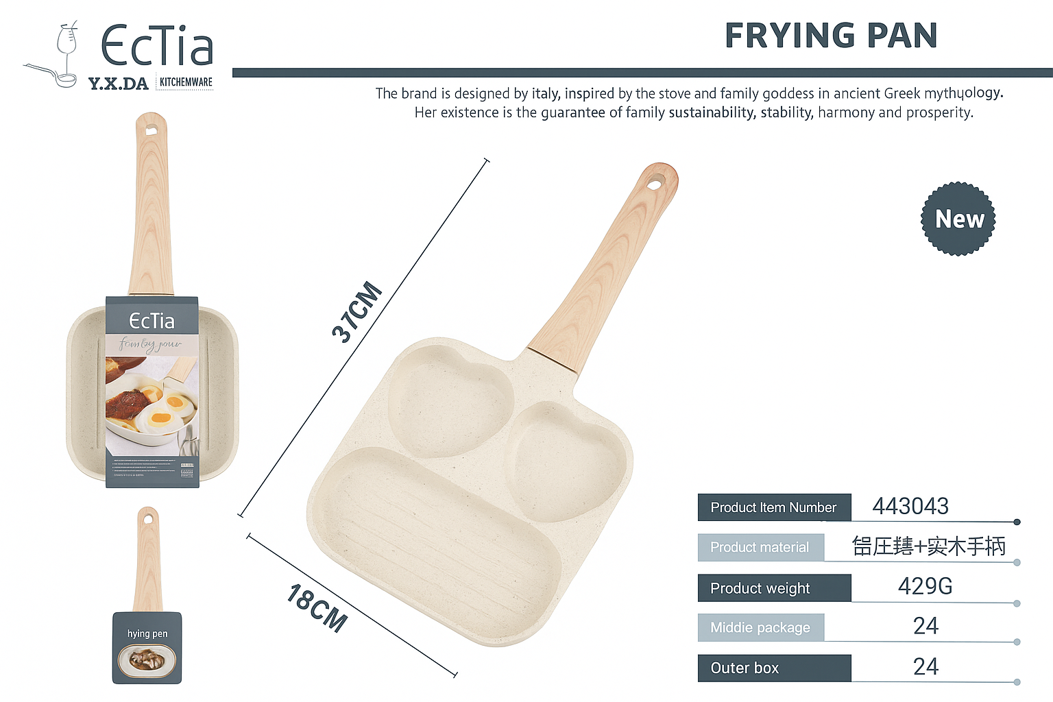 Compacto y funcional sartén para huevos fabricado en aluminio de alta calidad, ideal para preparar huevos fritos, panqueques, crepas o pequeñas porciones con una cocción rápida y uniforme. Su diseño práctico y su tamaño reducido la hacen perfecta para el uso diario en cualquier cocina.