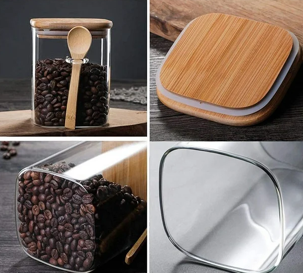 El vidrio transparente de alta calidad permite ver fácilmente el contenido, mientras que la tapa de bambú natural con sello de silicona hermético asegura un cierre perfecto para mantener la frescura y proteger contra la humedad.