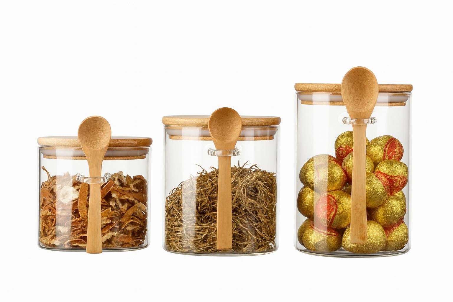 Tarro de vidrio con tapa y cuchara de bambú | 1500 ml