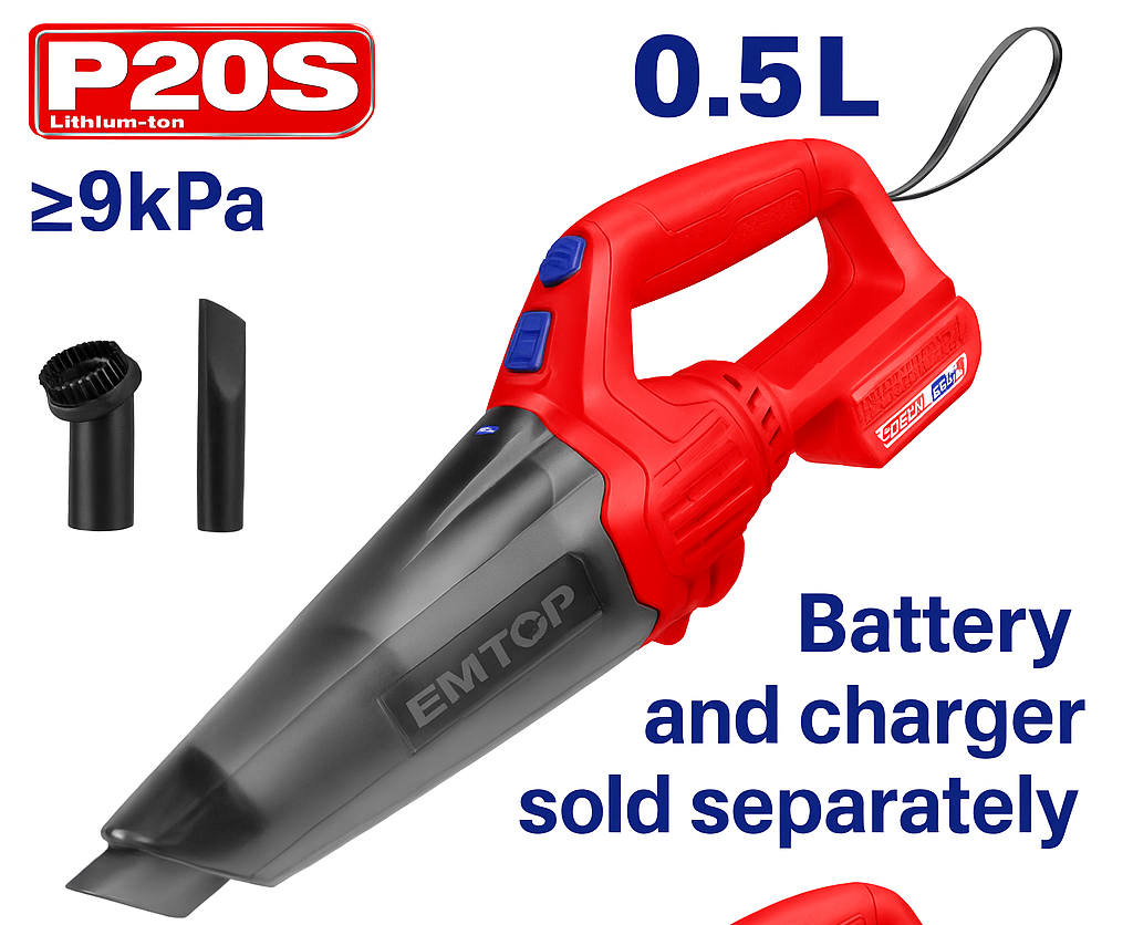La aspiradora inalámbrica ELVC201261 ofrece potencia y comodidad para una limpieza rápida y eficiente en el hogar, vehículo o taller. Con presión de succión de ≥9 kPa y depósito de 0.5 L, permite recoger polvo y residuos con facilidad.